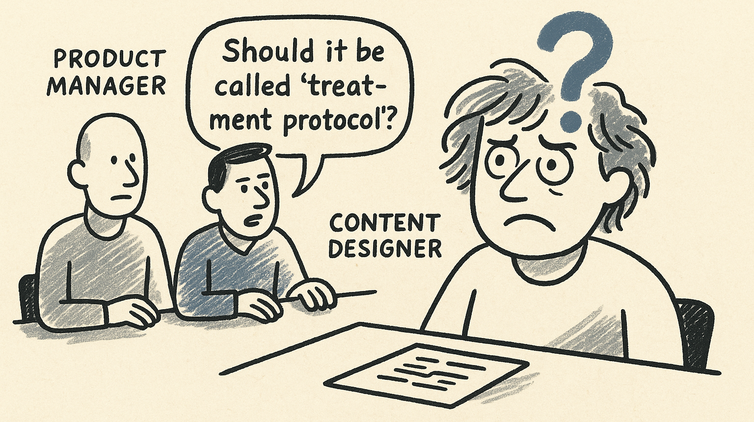 You’re three weeks into a new job. You’re in a meeting with product managers who’ve been working on this healthcare platform for three years. They’re debating whether to call something a “care plan” or a “treatment protocol,” and you have no idea what either term means.